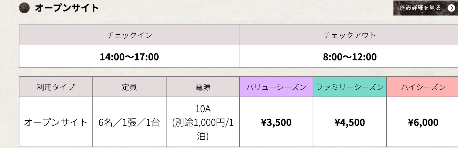 サイトは4つある。今回僕が泊まったのは、オープンサイト。